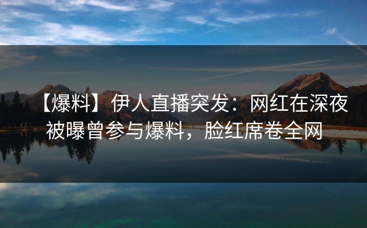 【爆料】伊人直播突发:网红在深夜被曝曾参与爆料,脸红席卷全网